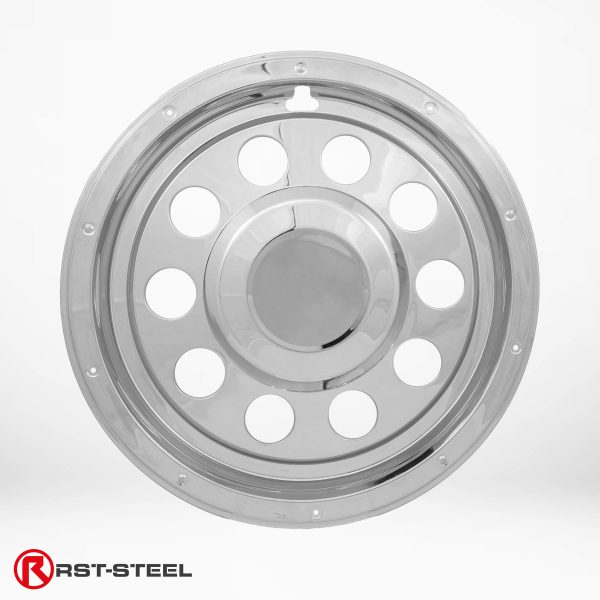 Ruostumattomasta teräksestä valmistettu koristekapselipari umpikeskiöllä 22,5” vanteille.