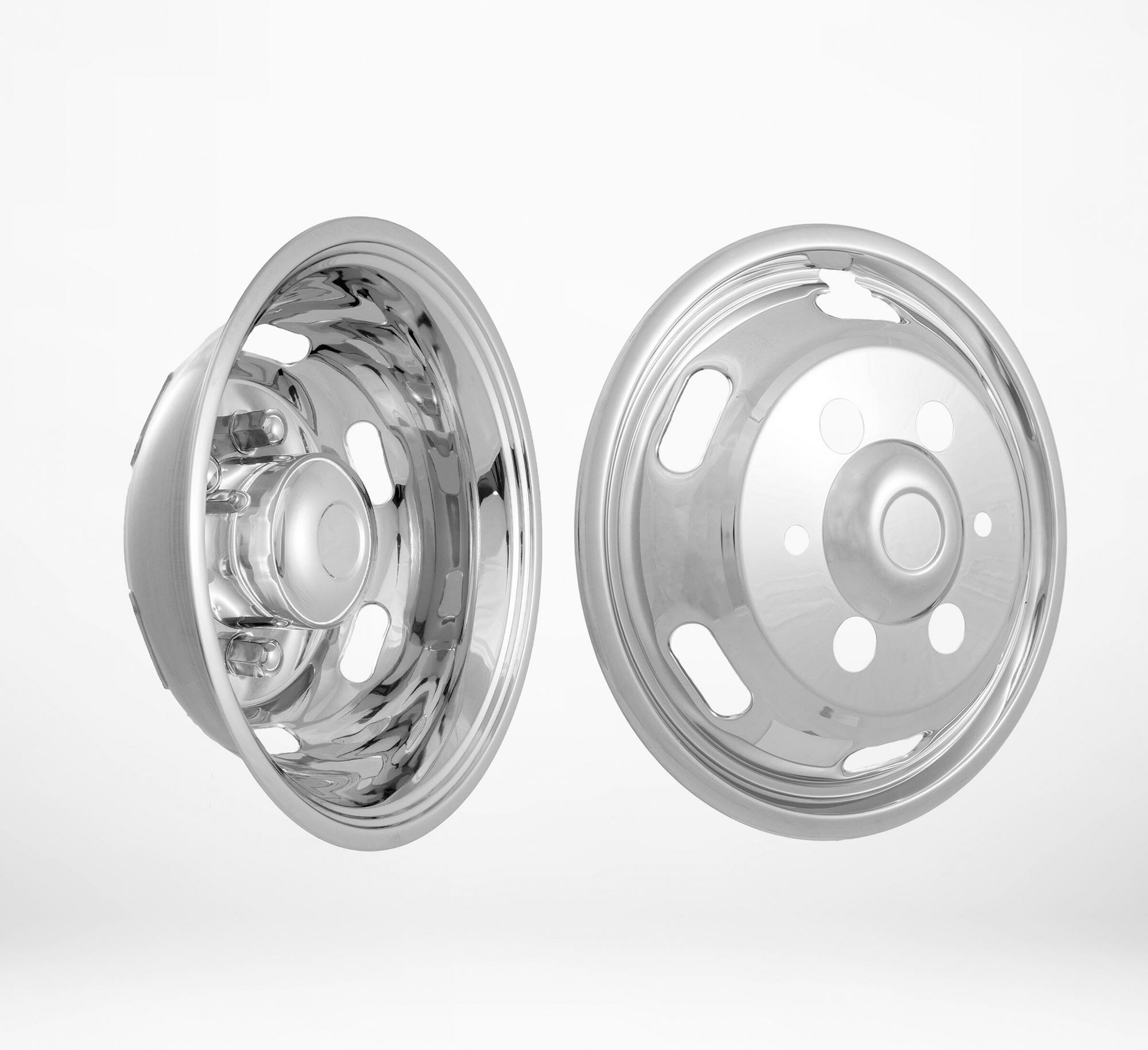 Ruostumattomasta teräksestä valmistettu koristekapselipari avokeskiöllä 22,5” vanteille.