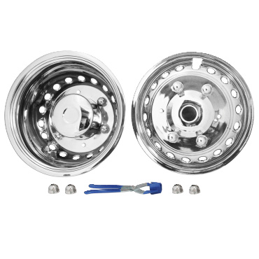 Viimeistelee näyttävästi ajoneuvosi ulkonäön, sekä samalla suojaa ja pidentää vanteiden käyttöikää. Kiinnitys pyöränmuttereiden alle. Koristekapselissa 10- pultinreikää. Sopii takapyöriin.
