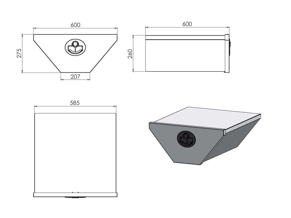 Kansi kiillotettua ruostumatonta terästä, aukipitolaitteena kaasujousi