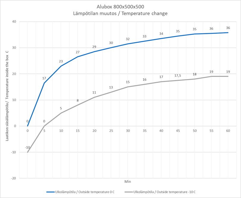Lämmitintä käytettiin 800x500x500 laatikossa.