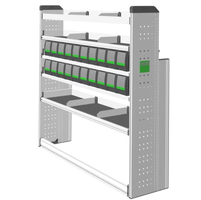 Alumiinirunkoinen kaluste takaa keveyden, jota kautta autoon saadaan maksimaalinen kapasiteetti kuorman lastaukseen