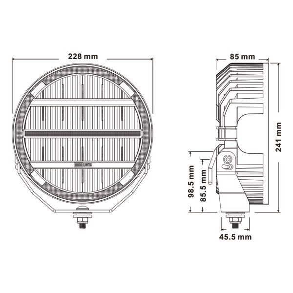 Briodlights Olympus 9″ lisävalo, integroitu R65 hyväksytty varoitusvalo sekä parkkivalo jonka väri valittavissa keltainen tai valkoinen.