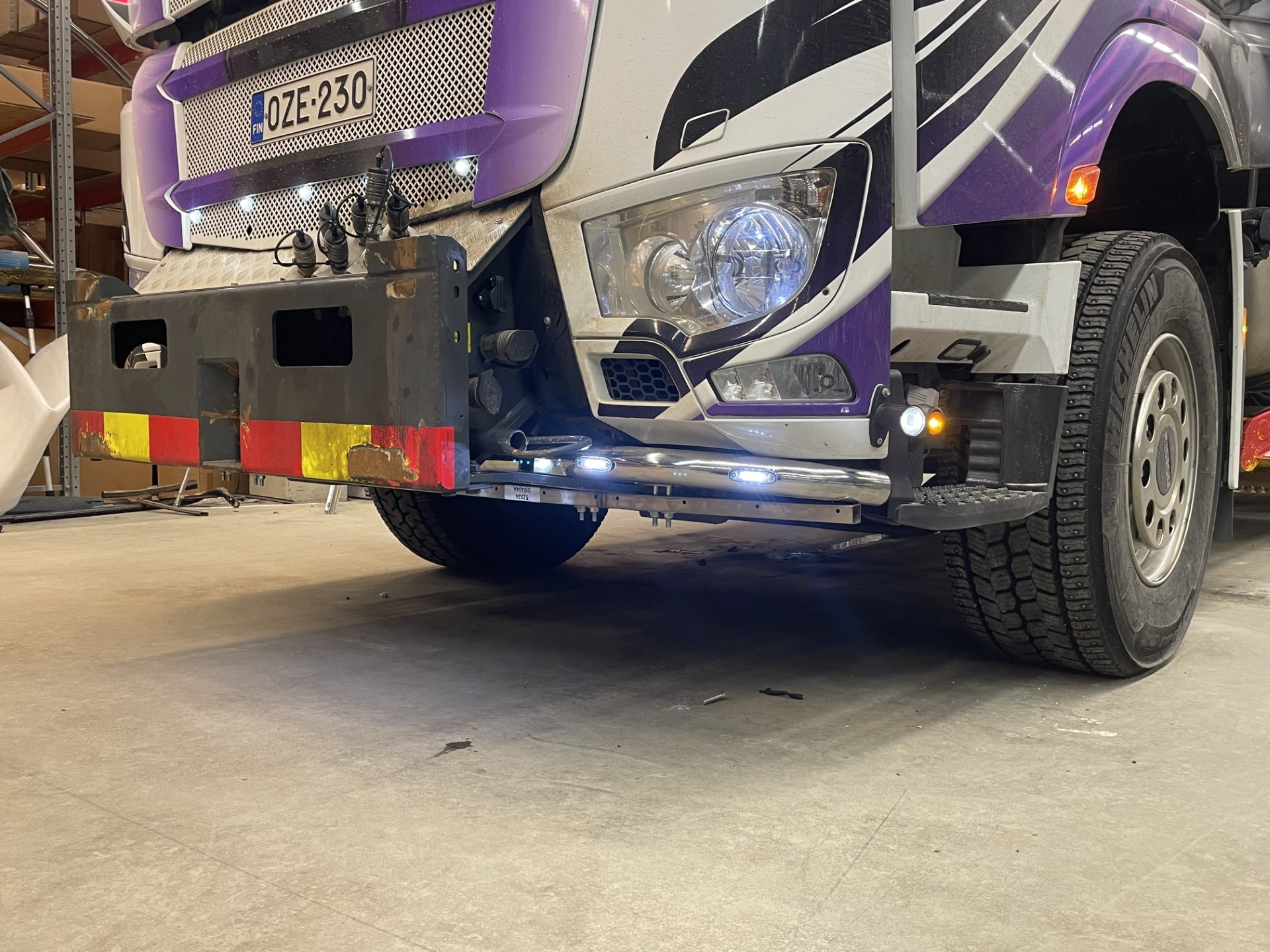 Putkessa on 4 kirkasta LED-äärivaloa eteen ja alaspäin, lisäksi 2 tasovilkkua alaspäin.