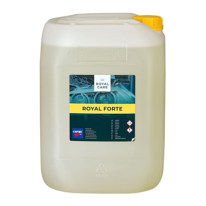 Royal Forte on tehokas, emäksinen esipesuaine. Royal Forte poistaa helposti lian kuten rasvan, liikenteen lian ja hyönteiset. Tuotteen liotusaika on lyhyt, ja se poistaa lian erittäin tehokkaasti. Royal Forte vaahtoaa hienosti esipesun aikana.