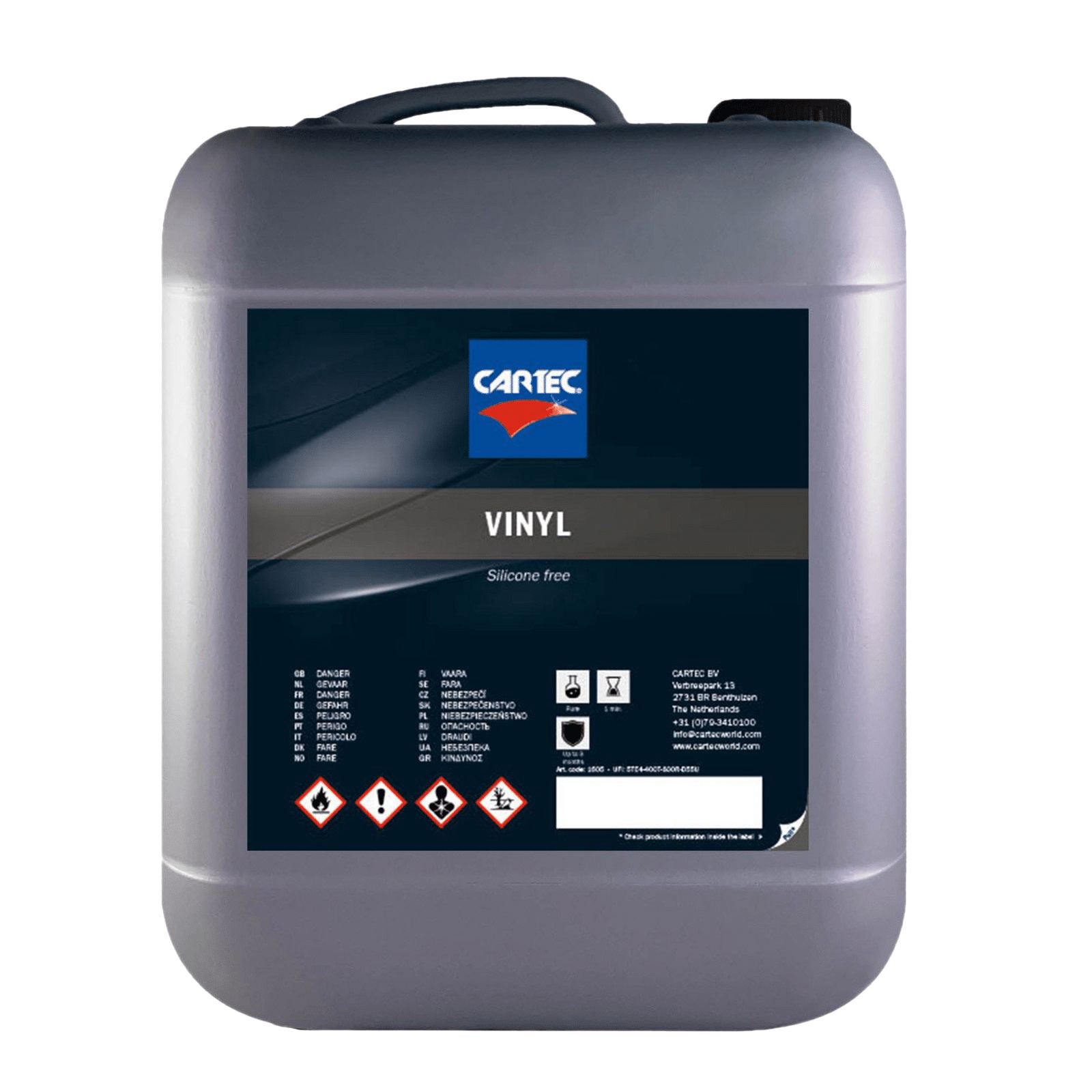 Cartec Vinyl on erityisesti muovi- ja kumiosille suunniteltu hoitoaine, joka puhdistaa ja suojaa yhdellä käsittelyllä. Se palauttaa alkuperäiset värit muoviosiin ja soveltuu erinomaisesti puskureiden, renkaiden ja vinyylikattomien hoitoon. Tuote jättää rasvattoman lopputuloksen.