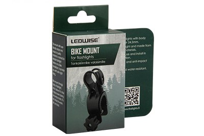 Tankokiinnikkeellä saa muutettua LEDWISE otsavalaisimen polkupyörän valoksi kiinnittämällä sen polkupyörän tankoon