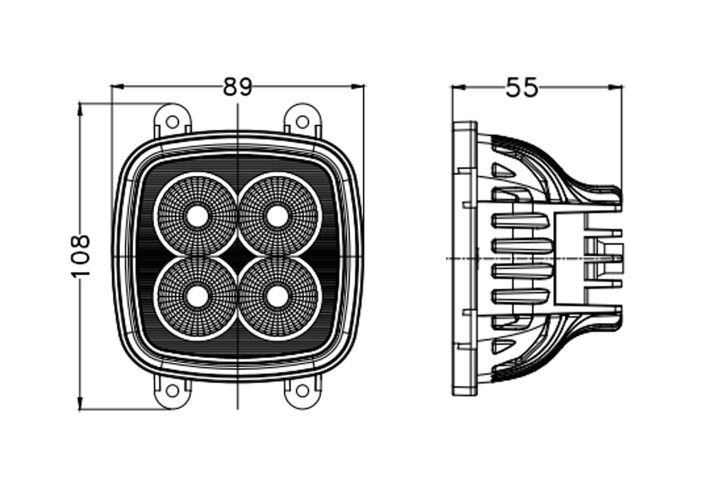 Leveällä valokuviolla ja laadukkailla ledeillä varustettu työvalo. Sopii useisiin John Deere-merkkisiin maatalouskoneisiin alkuperäisen halogeenivalaisimen tilalle.