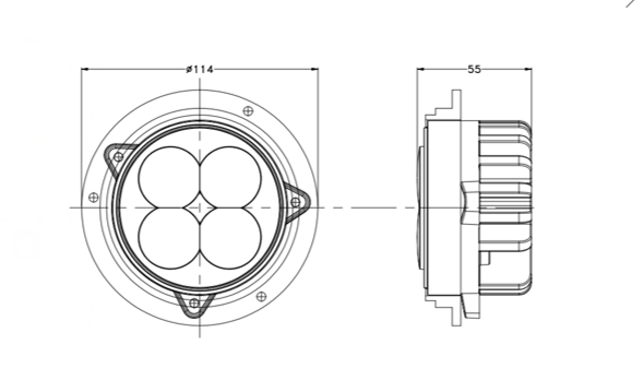 Upotettava työvalo, joka sopii mm. useisiin New Holland, John Deere ja Case-merkkisiin traktoreihin alkuperäisen halogeenityövalon tilalle.