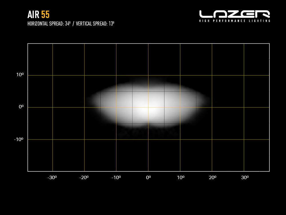 AIR-55 tuottaa 6 800 raakalumenia valotehoa ja saavuttaa 1 luxin valaistuksen jopa 524 metrin päähän. Optimoitu pystysuuntainen valokuvio parantaa näkyvyyttä kaikissa ajo-olosuhteissa. Laite on hyväksytty UNECE Reg 149 -standardin mukaisesti kaukovaloksi, ja se sisältää Lazerin E-Boost-teknologian, jolla valoa voi käyttää joko täydellä tai matalammalla teholla – manuaalisesti tai flash-to-dim-toiminnolla.