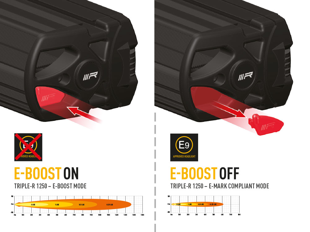 Triple-R 1250 Gen2:ssa on myös patentoitu E-BOOST -teknologia, joka mahdollistaa valaisimen käytön matalammalla teholla tieliikenteessä (E9) ja suuremmalla teholla muussa käytössä. Alumiinirunko, elinikäinen takuu (rikkoutumista vastaan) ja Gore-Tex -tiiviste tekevät valaisimesta kestävän ja luotettavan kovassakin käytössä. Tämä valaisin on täydellinen valinta niin tieliikenteeseen kuin moottoriurheiluun!