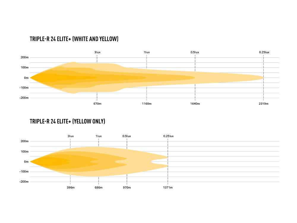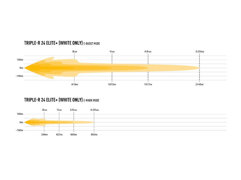 Lazer Triple-R 24 Elite+ koostuu 48 valkoisesta ja 40 keltaisesta LEDistä. Boost-tilassa valkoiset LEDit tuottavat 24 056 raakalumenia, kun taas Combo-tilassa valkoiset ja keltaiset LEDit yhdessä tuottavat 34 220 raakalumenia. Tämä on vaikuttava teho näin kompaktille lisävalopaneelille!