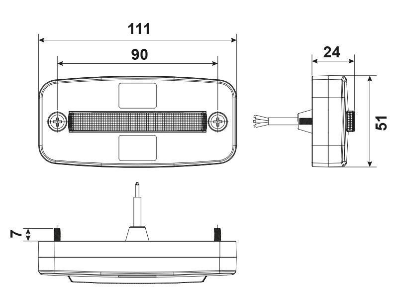 Äärivalo soveltuu suoraan korvaamaan olemassa olevat 110×50 mm äärivalot, ja sen mukana toimitetaan kätevä kulmakiinnitin helppoa asennusta varten. Pitkä, 5 metrin ADR-hyväksytty johto takaa joustavan asennuksen myös vaativissa kohteissa.