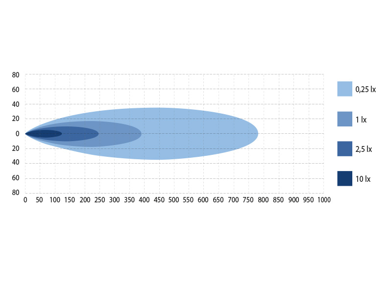- Kantama 1 lux: 390m